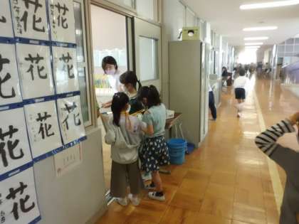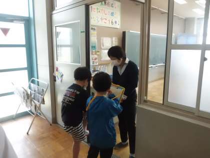 1年生と一緒に学校たんけんをするために,各教室の看板を作っています。そのために,各教室の先生にインタビューにも行きました。ドキドキしながらも,たくさん質問することができていました。