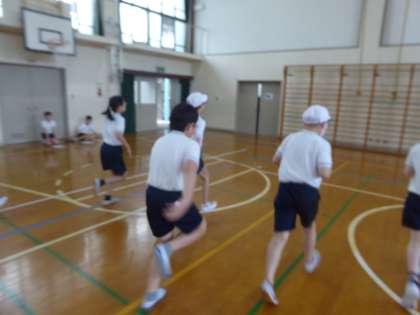 シャトルランをしました。音楽に合わせて行ったり来たり・・・今の力をしっかりと試しました。