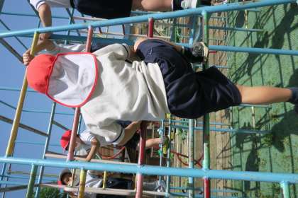 総合遊具に挑戦! 公開日 2022/04/28 更新日 2022/04/28 1年生のページ 体育科の学習で総合遊具に挑戦しました。 いっきにのぼるのではなく,少しずつのぼる練習をしました。 まだまだ怖い子もいるようです。少しずつ慣れていけるといいですね。