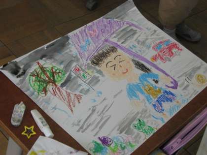 図画工作科の学習で,「雨の中で過ごす自分」をクレパスと絵の具を使って描きました。久しぶりにクレパスと絵の具を使いましたが,子どもたちはとても頑張って学習に取り組むことができました。