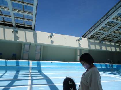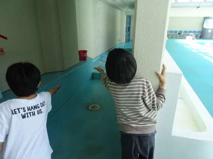 6月13日(月)より,水遊び,プール学習が始まります。おひさま学級は,6月14日,15日の低水位のプールで水に慣れていく学習を行ってからプールの水を増やして学習を行います。今日は,実際にプールへ行き,安全面やルールの確認をしたり用具の使い方を知ったりしました。