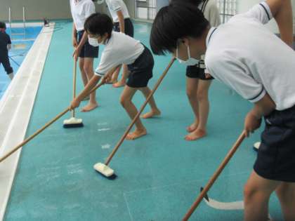 プール清掃 公開日 2022/06/10 更新日 2022/06/10 6年生のページ 水泳学習に向けて,プールサイドや更衣室などの清掃を行いました。デッキブラシでこすったり,雑巾で拭いたりとできることを見つけて取り組んでいました。これで,気持ちよく水泳学習を迎えられそうです。