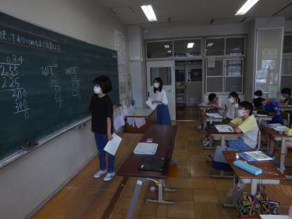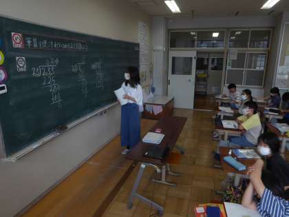 5年生 算数科〜小数のわり算〜 公開日 2022/06/13 更新日 2022/06/13 5年生のページ 小数のわり算に取り組んでいます。計算できるのも大切ですが,どのように計算しているのか説明する力も大切です。計算の仕方を説明して取り組みました。