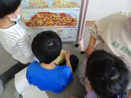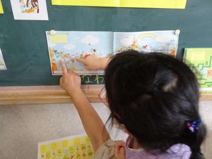 おひさま学級 道徳 「109ひきのどうぶつマラソン」 公開日 2022/06/13 更新日 2022/06/13 おひさま学級 道徳の時間に,絵本『109ひきのどうぶつマラソン』(作・絵/のはなはるか)を使って学習をしました。今日は,お話しに登場する動物の素敵をみんなで発見したりおひさま学級の友だちの素敵を発表し合ったりしました。それぞれの素敵を見つける良い時間となりました。