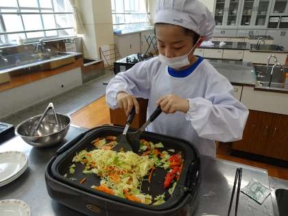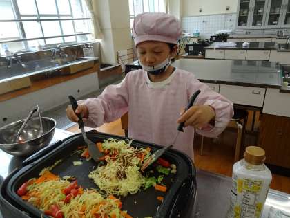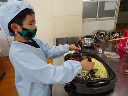 生活単元学習の時間に,おひさま学級の6月生まれの子どものお誕生日会を開きました。みんなと一緒に仲良く遊んだり,お誕生日の子どもがみんなと一緒に作って食べたいたこさんウインナー入り焼きそばを作ったりしました。一人ひとりが協力しながら調理を行っている様子が見られ,美味しい焼きそばができました!