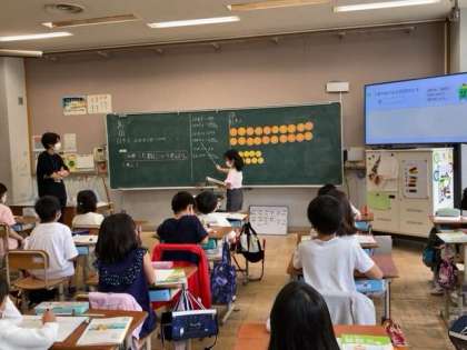 3年生 「1万をこえる数」 公開日 2022/06/15 更新日 2022/06/15 3年生のページ 10倍すると、答えがどうなるのかについて、10円玉や5円玉を使いながら、自分の考えを説明していました。前での説明も上手になってきています。