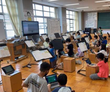 4年生 せんりつ作り 公開日 2022/06/16 更新日 2022/06/16 4年生のページ 音楽でせんりつ作りに取り組みました。作った旋律をリコーダーで確かめて練習し、ロイロノートに録音したり、工夫を書き込んだりしました。