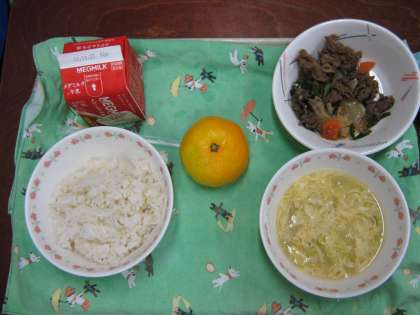 11月11日(金) プルコギ レタスとたまごのスープ 胚芽米ご飯 牛乳 みかん