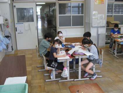 国語科では「まいごのかぎ」という物語の学習をしています。登場人物の「おもしろいな。」や「すきだな。」と思うところを見つけて感想文を書き,班で交流することができました。