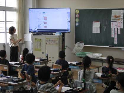 三年生 書写 公開日 2022/06/17 更新日 2022/06/17 3年生のページ 今週の書写の学習では,小筆を使って名前を書く学習をしました。字の大きさや文字の間の幅に気をつけて,子どもたちは一生懸命名前を書くことができました。