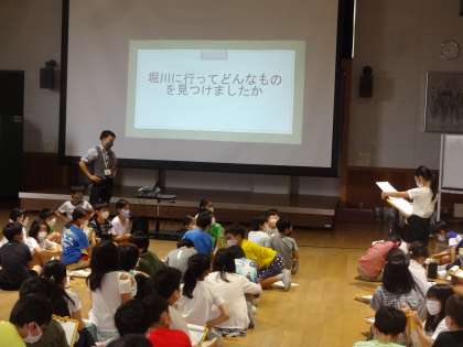 わくわく学習 私たちが環境を守る 公開日 2022/06/21 更新日 2022/06/21 4年生のページ 4年生はわくわく学習で堀川の環境について調べています。実際に堀川に探検して見たことや感じたことをもとに「堀川の環境は守られているのだろうか。」という問いについて討論しました。Yes No の立場に分かれ,問いに対して熱心に討議をする子どもたちの姿が見られました。