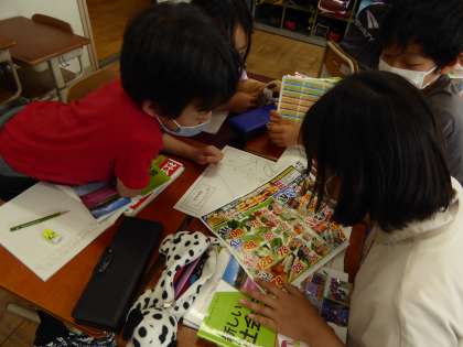 わたしたちが普段食べている食材の産地はどこだろう。そんな疑問を解決するために広告を見合いながら産地調べをしました。国産の物が多い,肉は海外からが多いなど多くの気づきがあったようです。