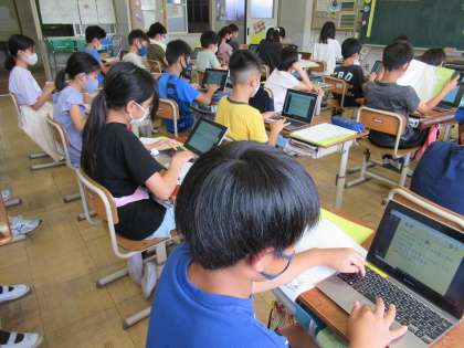 わくわく学習〜My work plan!〜 公開日 2022/06/23 更新日 2022/06/23 5年生のページ 先日,田植えをして,お米のプロの西村さんにインタビューしたことをパソコンでまとめました。今回は学年のみんなと交流するためにロイロノートを活用しています。お米について考えたことや,働くことについて考えたことなど,自分の考えを整理して色分けしてまとめました。次は学年のみんなと交流します。