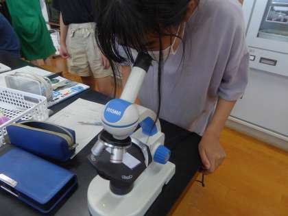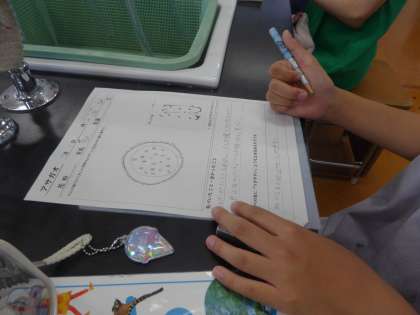 2種類の顕微鏡を使い朝顔についていた花粉を観察しました。よく見てみると丸い形だったり、ギザギアがあったりしています。顕微鏡でしか見ることができない世界も不思議がいっぱいです。