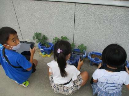 2年生は生活科でサツマイモとマリーゴールドを育てています。