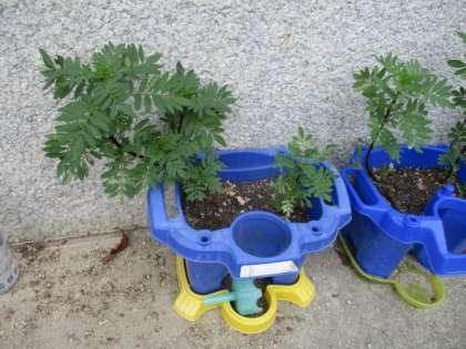 7月下旬に鉢に植えたマリーゴールドが葉っぱも大きくなり,茎もぐんぐん伸びています。