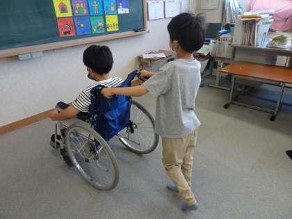 9月7日(水)に、フリー参観を行いました。3時間目の学活の時間に絵本『ええやんそのままで』(トッドパール作 つだゆうこ訳)を使って授業を行いました。絵本の内容は、自分を大切に、そして、多様な他者を認めたり大切にしたりしようというメッセージが込められています。子どもたちは絵本の世界に触れ、自分の日常生活に結びつけて考えたりつぶやいたりしていました。また、絵本の中に登場する車いすや盲導犬の場面を取り上げ、車いすや盲導犬について知ったり、車いす体験や点字絵本に触れたりもしました。さらに学習が深まるように、次週も体験や学習を行う予定です。