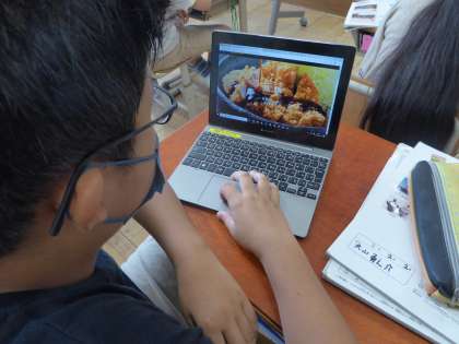 食料自給率を上げていくための工夫をインターネットを使って調べました。調べたことはロイロノートを使ってまとめていきました。それぞれの地域で行っている取り組みは興味深かったようです。