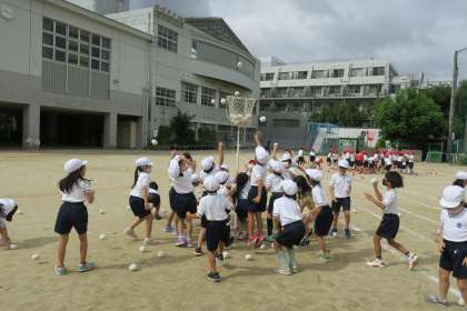 スポーツフェスティバルに向けて玉入れの練習中です。