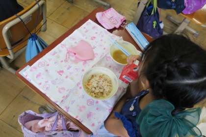 1年生にとって初めての台風献立でした。 完食できた子も多かったです。