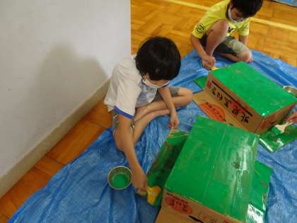 10月18日に行われる合同運動会に向けて、競技に使う物や運動会に関連した飾りを子どもたちで協力して作っています。新町小学校が今年会場校ですので、盛り上げようと気持ちが高まっています。