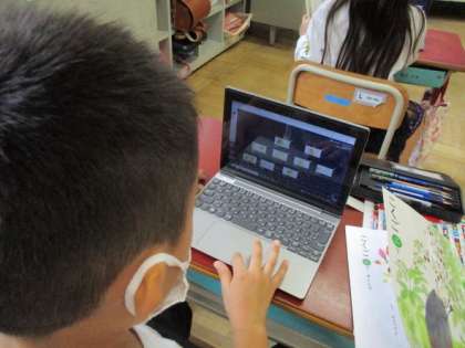 今日はロイロノートを使って、お話の挿絵を並び替えました。
