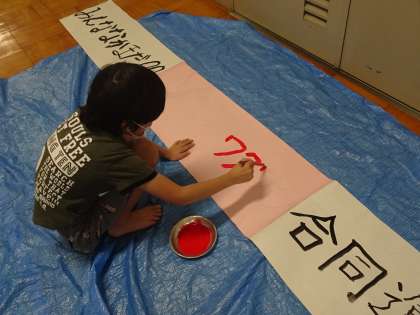 10月18日の合同運動会に向けて、おひさま学級の子どもたちに「どんな合同運動会にしたい?」と話をすると「みんななかまだ!ドキドキワクワク合同運動会を楽しもう!」という気持ちで合同運動会を行いたいと話をしていました。とても素敵な言葉でしたので、合同運動会でみんなの前で発表してはどうかな?ということになりました。早速大きな紙を用意し、みんなで協力して言葉を書きました。言葉の周りにおひさま学級の子どもたちが作った飾りを装飾し、本番で発表したいと思っています。完成が楽しみです!