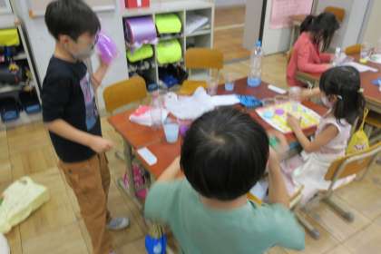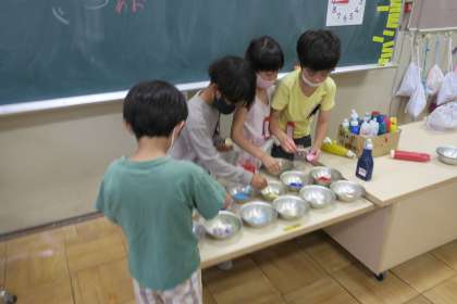 絵の具の量、水の量、絵の具の混ぜ方を工夫していろいろな色を作ることができました。