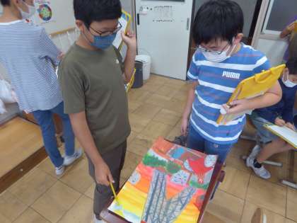 5年生 図画工作〜作品鑑賞をしよう〜 公開日 2022/10/07 更新日 2022/10/07 5年生のページ 頑張って描き上げた作品を鑑賞しました。「○○さんの作品、大好き」と言ってくれる子もいて素敵な時間になりました。