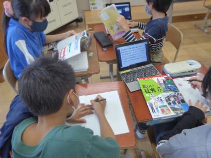 5年生 社会科〜関連工場を調べよう〜 公開日 2022/10/07 更新日 2022/10/07 5年生のページ 自動車工業の学習は順調に進んでいます。今日は部品などを作る関連工場を調べました。必要なときに必要な分だけ作る方法に驚いていました。