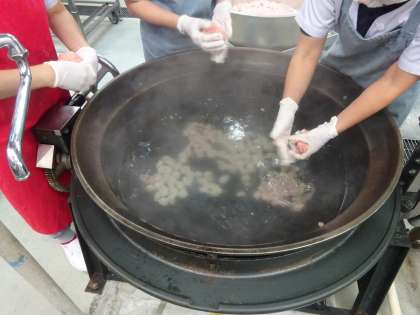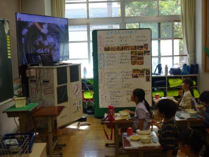 肉だんごのスープ煮には、手作りの肉だんごを入れています。調理員さんの手によって一つずつ作った肉だんごは、ふんわりとしており子どもたちも大喜びでした。調理の様子を見て、ありがとうの気持ちをもって食べることができました。