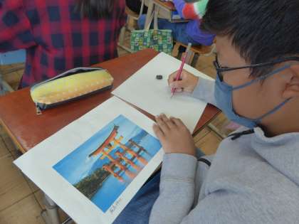 5年生 図画工作科〜版画の学習を始めました〜 公開日 2022/10/12 更新日 2022/10/12 5年生のページ 図画工作科の学習は「版画」を始めました。今回は「世界遺産」をテーマに取り組んでいます。さっそく下描きをしてペンでなぞりました。