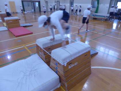 5年生 体育科〜跳び箱〜 公開日 2022/10/17 更新日 2022/10/17 5年生のページ 今日の体育の跳び箱は「かかえこみ跳び」を中心に学習しました。しっかりと踏み切ることに気をつけながら練習をくり返しました。