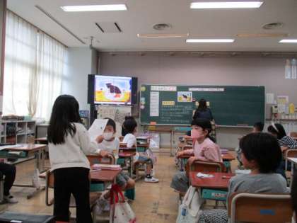 2年生は栄養教諭の東先生と一緒に「もらってつながる○○○」の勉強をしました。