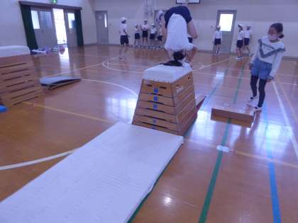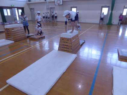5年生 体育科〜跳び箱〜 公開日 2022/10/21 更新日 2022/10/21 5年生のページ ねらい2は「もう少し頑張ればできそうな技に挑戦」です。くり返し練習を重ねてできる技も増えてきました。