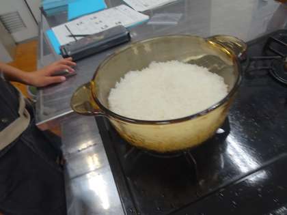 おひさま学級 交流5年「ご飯を炊こう」 公開日 2022/10/21 更新日 2022/10/21 おひさま学級 家庭科の学習でご飯を炊きました。中が見える鍋を使ってご飯を炊いたので、ご飯が炊きあがる様子を興味深く見ている子どもたちが多かったです。炊き立てのご飯はとても美味しく、おかわりをしている子どももいました。