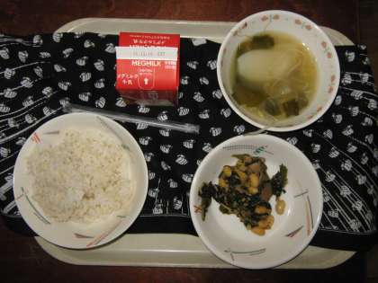 12月5日(月)肉味噌いため わかめスープ 麦ご飯 牛乳