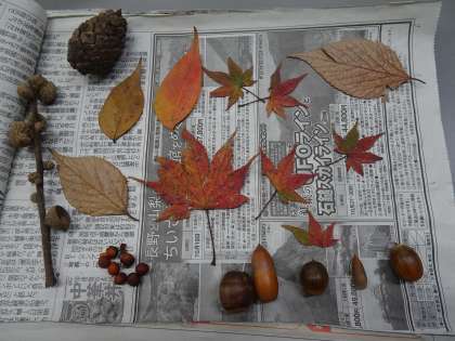 京都御苑へ秋見つけに行きました。秋晴れでとても気持ちの良い一日でした。いろいろな形のどんぐりや葉っぱ、木の実を見つけて、楽しみました。1年生のみんなで、たくさんの秋を見つけることができました。見つけてきたどんぐりや木の実は、あさがおのリース作りにも使いたいと思います。