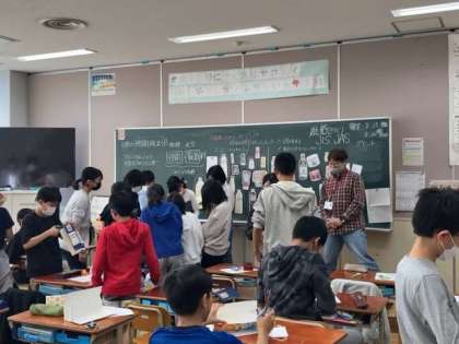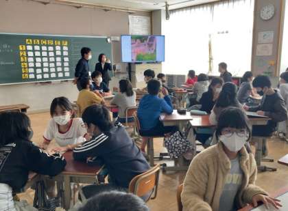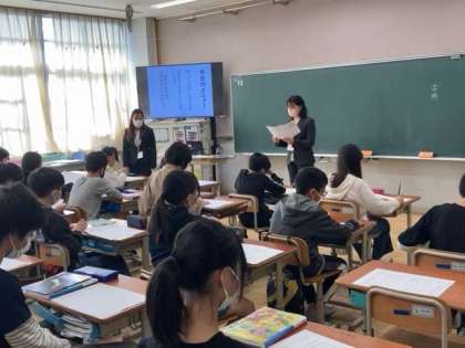 上京中学校の先生に授業をしていただきました。1組は英語、2組は技術家庭、3組は国語(古典)の授業でした。教科の特徴を生かした面白い授業をしていただくことができました。