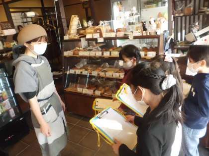 新町小学校の校区にあるお店や施設にグループごとにインタビューに行きました。