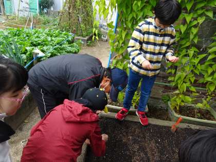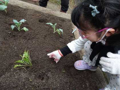 おひさま学級 「冬野菜の苗植え・種まきを行いました!」 公開日 2022/11/16 更新日 2022/11/16 おひさま学級 おひさま畑でさつまいもを収穫した後、冬野菜の苗植えや種まきを地域の方々と一緒に行いました。おひさま畑で育てる冬野菜は、水菜、ブロッコリー、かぶ、人参、ほうれん草です。子どもたちが育ててみたい冬野菜を考えて、畑を作っています。今後の生長が楽しみです!