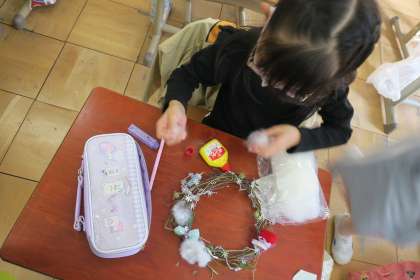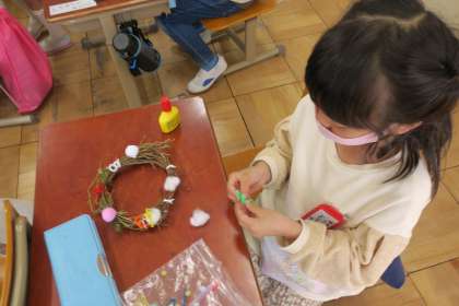 リースづくり 公開日 2022/11/17 更新日 2022/11/17 1年生のページ 生活科で育てたあさがおのつるを使ってリースを作りました。 家に持ち帰り、さっそくかざったという子どもたちの声も多く聞きました。 楽しそうに作ってくれてよかったです。