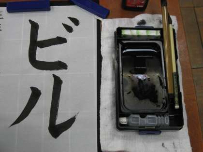 「曲がり」と「おれ」の筆づかいに気をつけて「ビル」という文字を書きました。子どもたちは、始めに書いた文字と終わりに書いた文字を見比べて、自分たちの成長を実感することができていました。