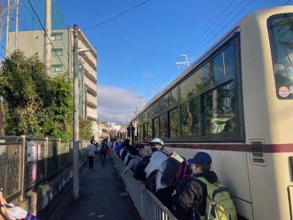 出発式を終え、バスに乗り込みました。青空が見えていてよかったです。お見送りありがとうございました。