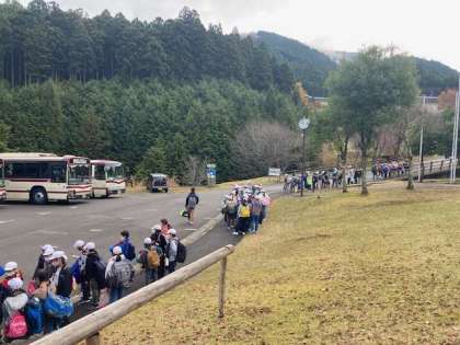 5・6年花背山の家 公開日 2022/11/21 更新日 2022/11/21 学校の様子 到着して入所式が終わりました。アスレチックが濡れているので、5年はフライングディスクゴルフ、6年はネイチャービンゴから活動スタートです。