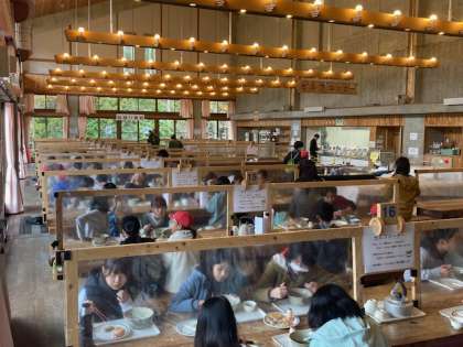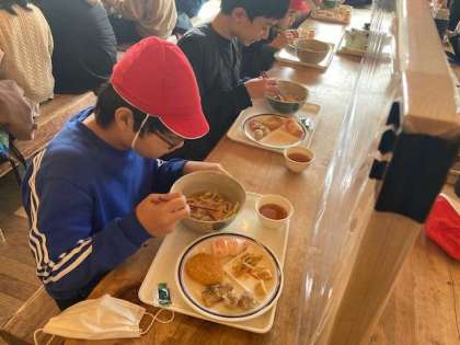 食堂で昼ごはんです。うどんが温かくて体も温まりました。
