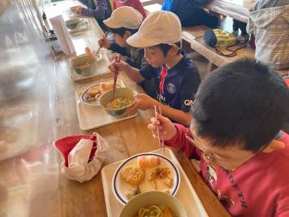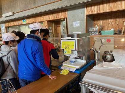 5年生も昼食です。おかずをたくさんおかわりしていました。ごはんを自動でおかわりしてくれる機械がありました。