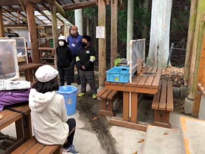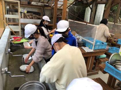 5年生も豚汁とご飯を作ります。火も上手に付けられています。
