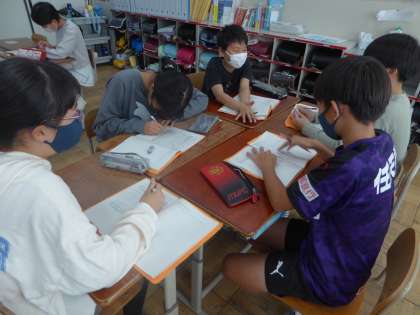 22日に山の家から帰ってきました。今日はそのふり返りをしました。グループで協力したことや頑張ったこと。また、個人で取り組んだことなどを中心にふり返りました。今後の学校生活につなげていってくれるとうれしいです。