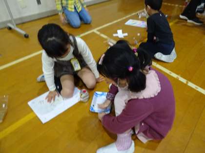 2年生の生活科「あそんで ためして くふうして」のおもちゃ発表会に1年生を招待してもらいまいした。2年生は、身近な材料を使って、一人一人が工夫したおもちゃを作っていました。いろいろなおもちゃがあるのを見て楽しんだり、2年生が丁寧におもちゃの遊び方を教えてくれたりして、一緒に楽しんで遊ぶことができました。